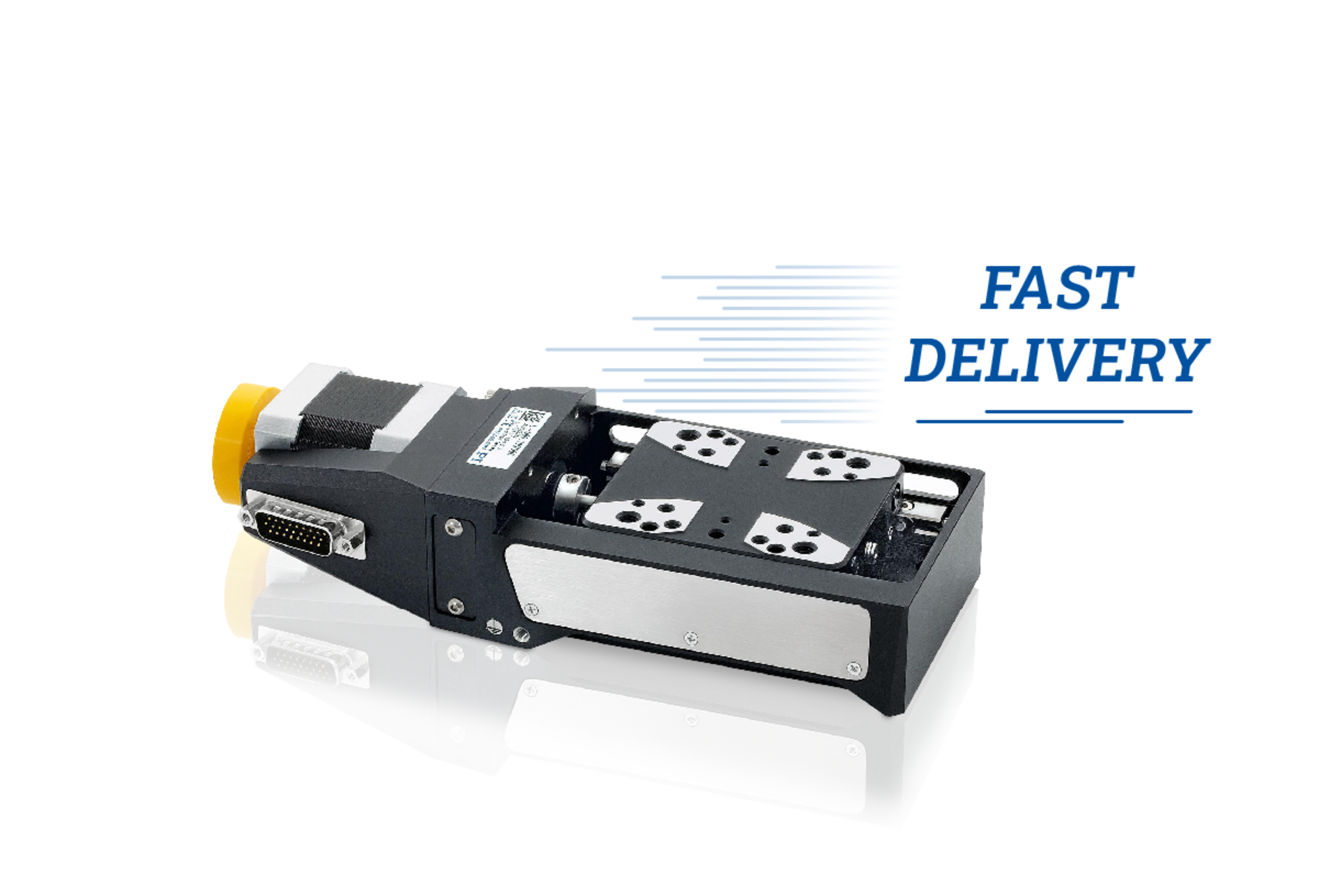 Precision linear stage; DC motor; 26 mm travel range; 100 N load capacity; 50 mm/s maximum velocity; ball screw; incremental rotary encoder, A/B quadrature, RS-422