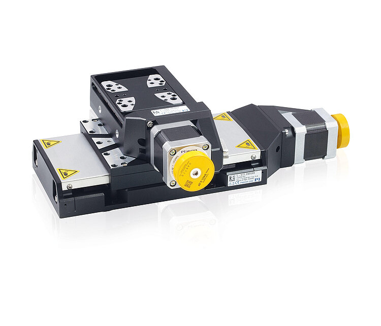 Precision linear stage; 2-phase stepper motor; 102 mm travel range; 100 N load capacity; 20 mm/s maximum velocity; ball screw; incremental linear encoder, 20 µm sensor signal period, sin/cos, 1 V peak-peak