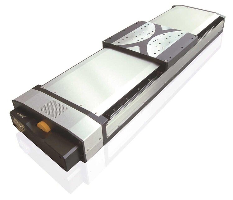 Linear stage for very high loads; 2-phase stepper motor; 815 mm travel range; 1500 N load capacity; 50 mm/s maximum velocity; ball screw; incremental linear encoder, 20 µm sensor sensor signal period, sin/cos, 1 V peak-peak