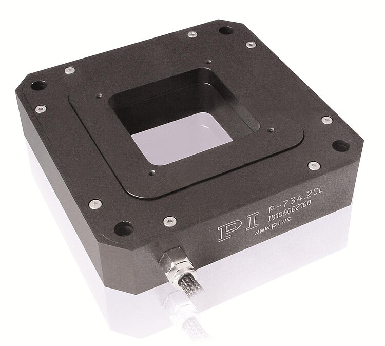 XY piezo scanner; 100 µm × 100 µm travel range (X × Y); capacitive, direct position measuring; LEMO LVPZT; 1.5 m cable length