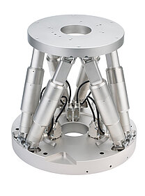 A hexapod is a parallel-kinematic motion platform, that moves, positions, and aligns loads in six degrees of freedom: three translational axes (X, Y, Z) and three rotational axes (ΘX, ΘY, ΘZ). The typical structure of a hexapod, also known as Stewart platform, consists of six length-adjustable actuators connected via joints to the base plate as well as a motion platform that carries the load. Thanks to their parallel-kinematic design, hexapods can execute complex multi-axis motion profiles with high repeatability, dynamics, and stability. At the same time, they are very compact.