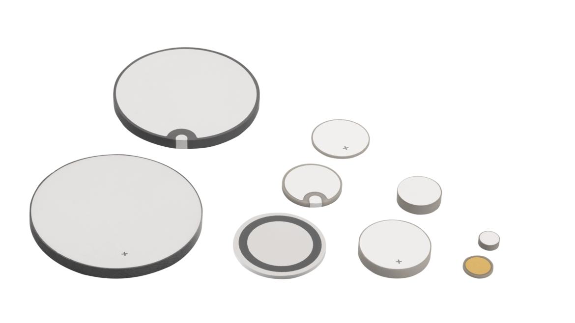 By precisely refining piezo components, individual, application-specific properties can be achieved. The discs can also be combined to create more complex functional units, such as transducer elements.