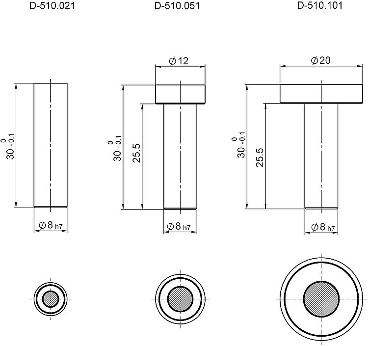 All PISeca sensor heads are equipped with a LEMO connector for easy mounting and replacement. The uniform shaft thickness ensures compatibility and flexibility. The cable for connecting to the evaluation electronics is available in several variants and must therefore be ordered separately.