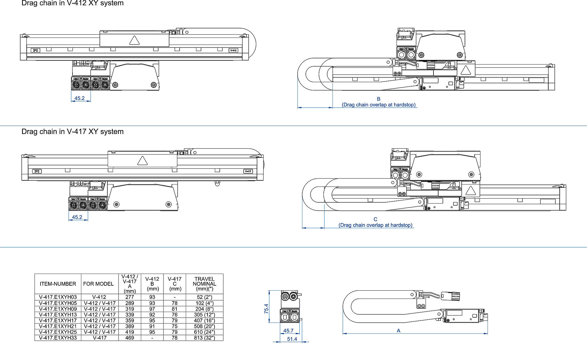 Drag chains for V-412 and V-417 XY assemblies