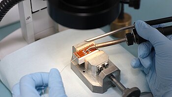 The miniature actuators PICMA® Chip with a height of only 2 mm are also offered as round version with inner hole. These extremely compact piezo actuators feature maximum dynamics with high resonant frequencies. PICMA® Chip piezo actuators can be easily combined to stack actuators.