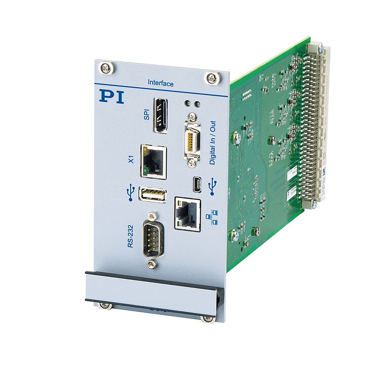 Interface module for digital control of the closed-loop analog E-500 motion control system. Availability of digital functions such as wave generator or data recorder.