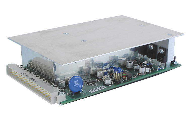 E-413 piezo amplifier modules offer precision control for piezo shear and bending actuators in static and dynamic operation. The output voltage can be either set exactly with an external offset potentiometer (not in the scope of delivery) or controlled via an analog input signal that is amplified by a factor of 50.