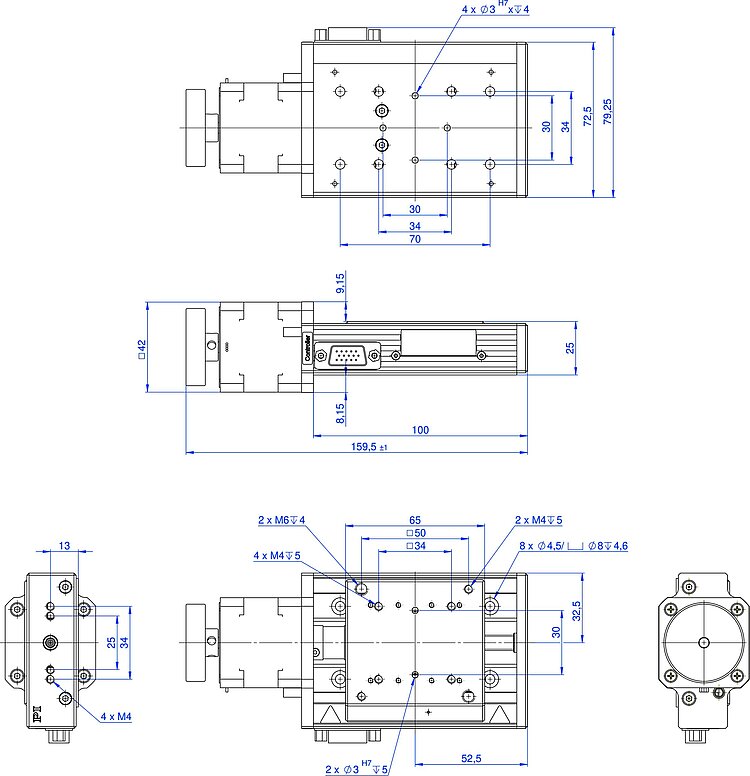 | Travel range in X | 25 mm | 50 mm | 100 mm | 200 mm | 300 mm | |