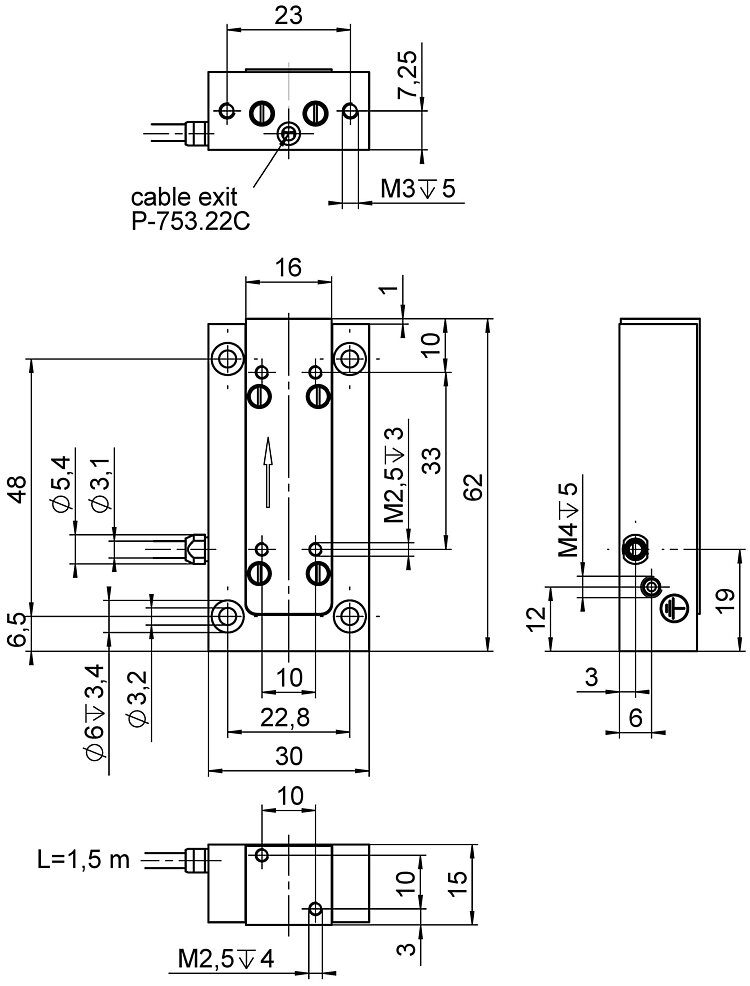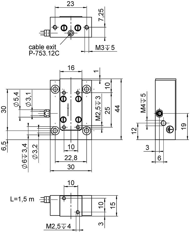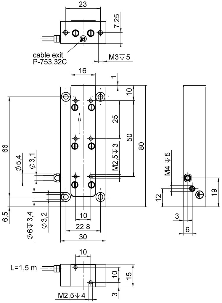 LISA linear actuator and positioning stage; 30 µm travel range; capacitive, direct position measuring; D-sub 7W2 (m); 1.5 m cable length