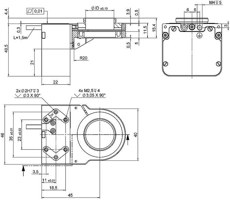 | Integrated sensor | Capacitive, direct position measuring | Capacitive, direct position measuring | |