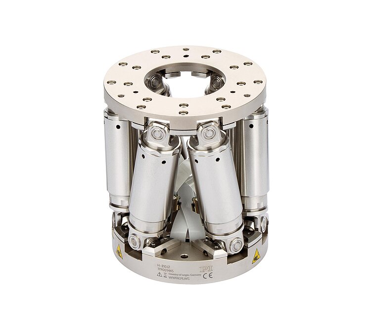 Parallel-kinematic design for 6 degrees of freedom, making it significantly more compact and stiff than serial-kinematic systems, higher dynamics, no moved cables: Higher reliability, reduced friction.