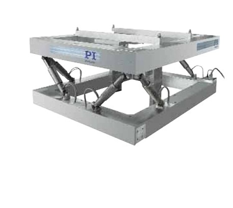 Dimensions of 100 cm x 84 cm x 40 cm and a load capacity of up to 200 kg makes this custom Hexapod system suitable for all kinds of fine-positioning tasks, as in TV-screen inspection