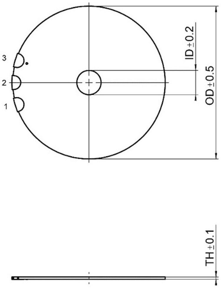 Resonant frequency, unloaded: Measured at 1 Vpp restraint with rotatable mounting on the outer circumference.