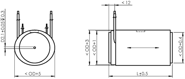 | Travel range | Diameter OD | Length L | Blocking force | Stiffness | Electrical capacitance | Resonant frequency | |