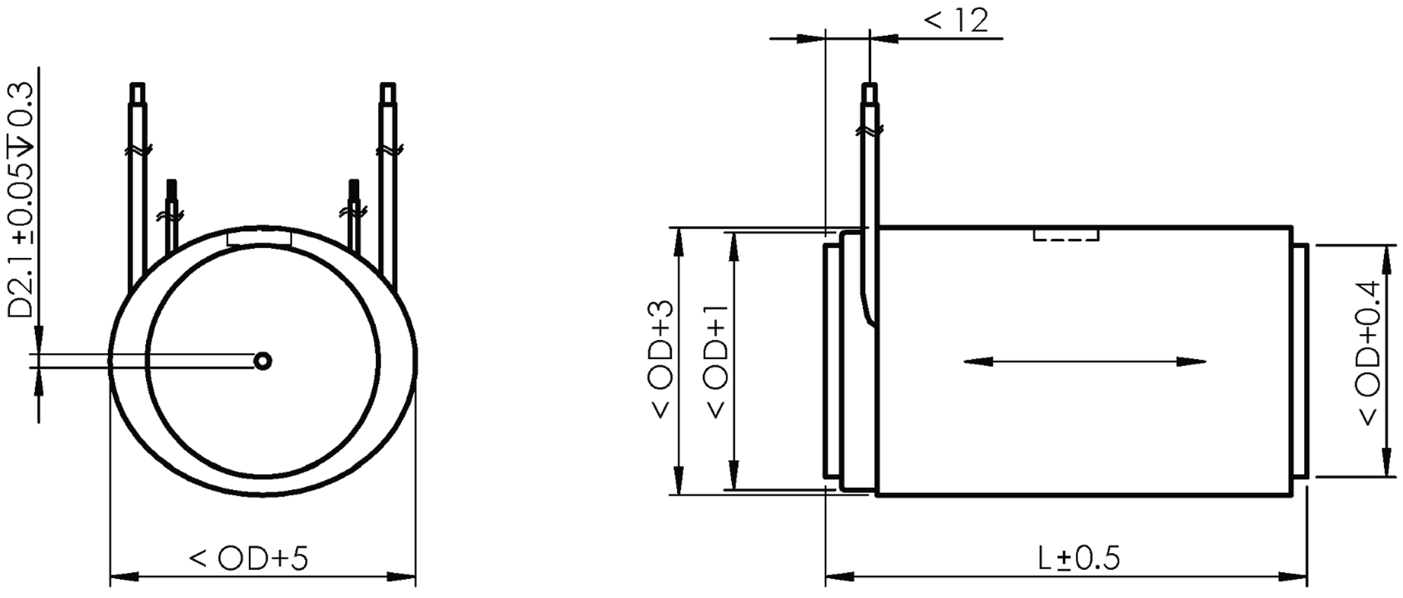 Length L: tolerance ±0.5 mm