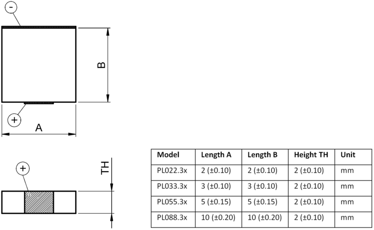 | PL022.3x | PL033.3x | PL055.3x | PL088.3x | Unit | Tolerance | |