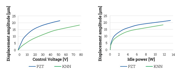 The >> material parameters are decisive in achieving the desired specifications of a power ultrasound transducer. The use of lead-free KNN rings reduces the displacement at the same power level and the same voltage. This can be compensated for with a higher drive voltage.