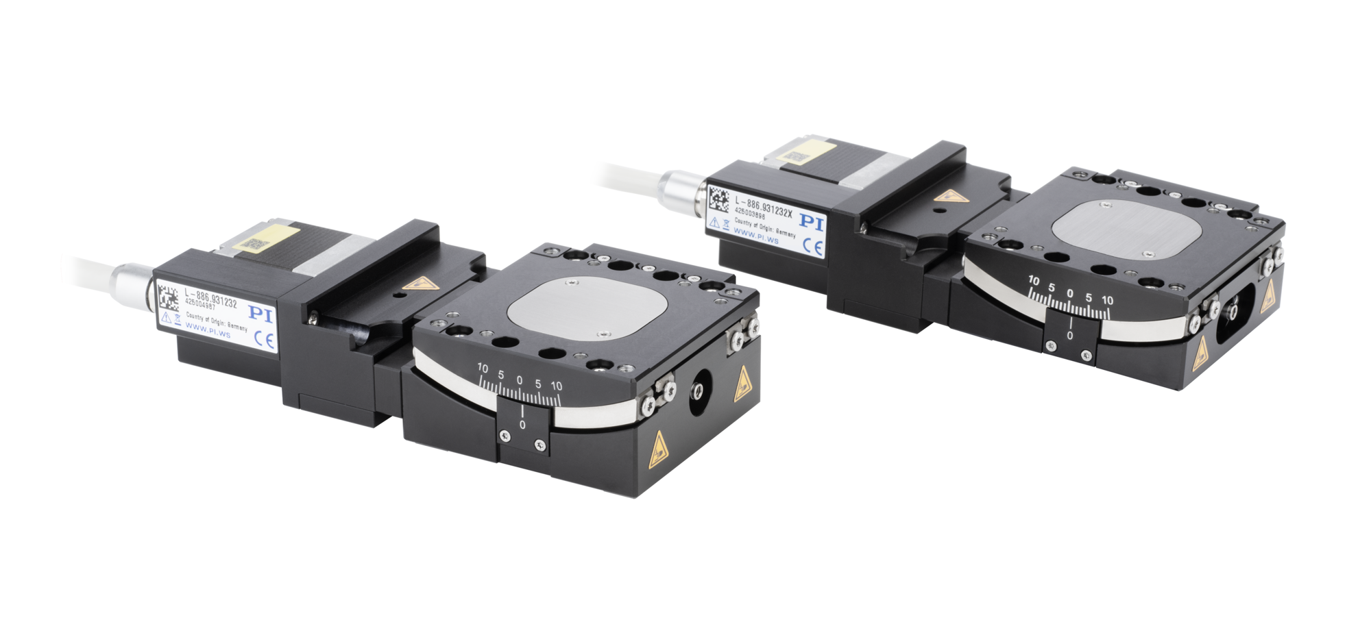 - Compact, stackable design with high flexibility: Thanks to its compact design and the ability to combine two goniometers with identical centers of rotation, the L-886 offers maximum flexibility for precise multichannel photonics alignment applications.