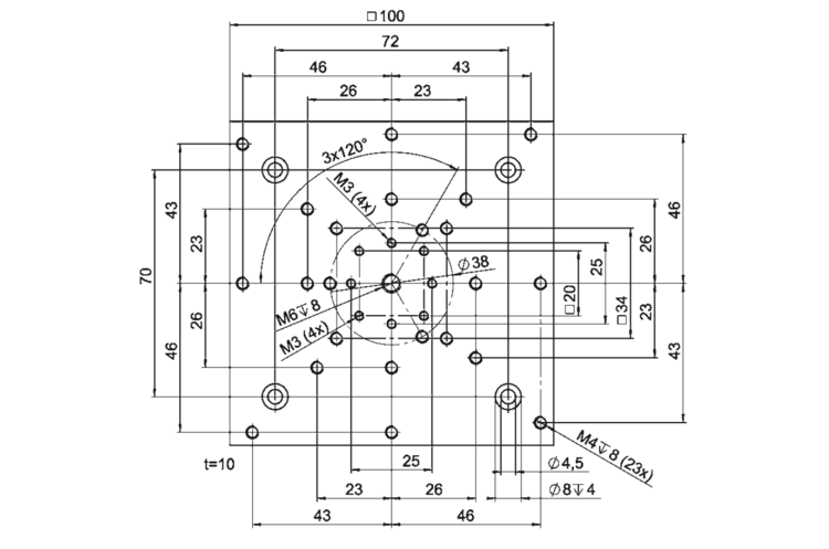 Adapter Plate for Horizontal Mount on Stages with Standard Hole Pattern and for Vertical Mount of Rotary Stages on M-403 / M-404 Stages